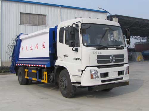 壓縮式垃圾車由汽車二類底盤、密封式壓縮垃圾廂、液壓系統、操作系統組成。整車為全密封型,自動壓縮、自行傾倒、壓縮過程中的污水全部進入污水箱,較為徹底的解決了垃圾運輸過程中的二次污染的問題,關鍵部件采用進口部件,具有壓力大、密封性好、操作方便、安全等優點。可選配后掛桶翻轉機構或垃圾斗翻轉機構以及后翻轉式幾種車型;是用于城鎮袋裝、桶裝、散裝生活垃圾物的收集、運輸、卸料作業的專用車輛。垃圾被車載垃圾推進器又稱負壓機構推壓入車箱,從而使垃圾較高密度、較均勻地分布在車箱內,直至裝滿為止;該垃圾車的收運方式是目前世界上廣泛采用的垃圾收運方式,其專用裝置的功能均以汽車發動機為動力,通過液壓機構手動或電控操作來實現。壓縮式垃圾車的箱體、裝填器又稱斗體及污水箱均采用優質炭鋼板全密封焊接結構,具有強度高、重量輕、不產生二次污染等優點。