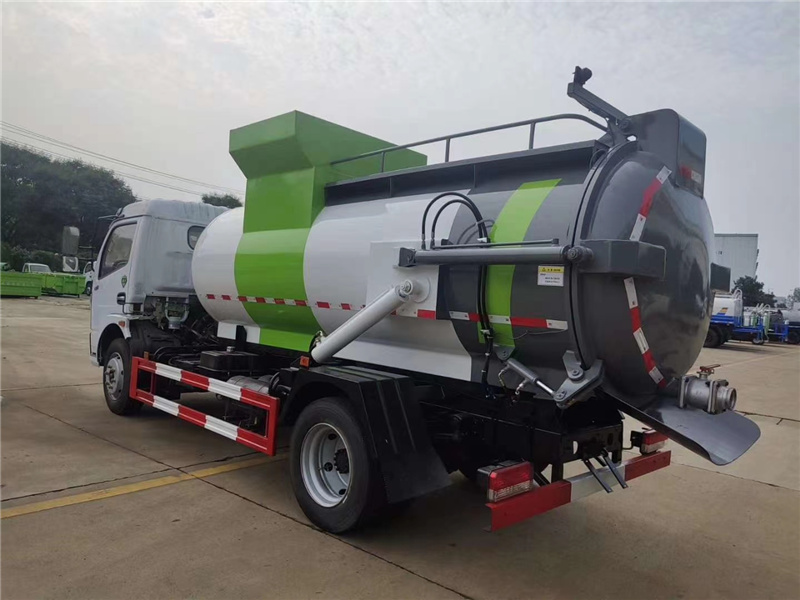 餐廚垃圾車也叫泔水垃圾車、餐余垃圾車、剩飯剩菜泔水運輸車。此車密封性好、收集和運輸過程中不會出現泔水外流或者是滴落的現像發生,不會造成二次污染,避免了環境和城市的市容市貌的污染。車輛電控液壓操作,方便快捷,安全穩定。