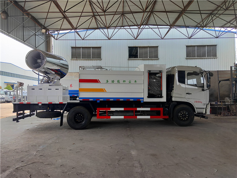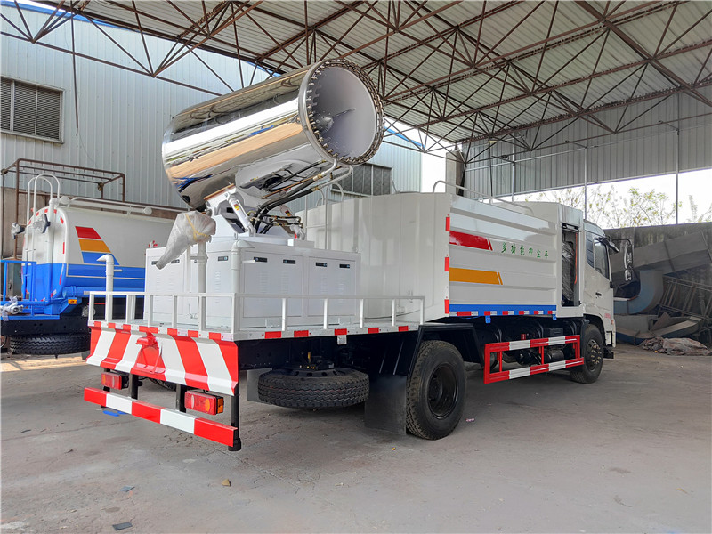 | 灑水車工作主要由發動機帶動變速箱,變速箱上安裝的取力器帶動灑水車水泵產生動力,將罐體內部的水通過管路噴灑出去,水泵可自吸自排。可根據用戶需求選配抑塵霧炮。 | |
